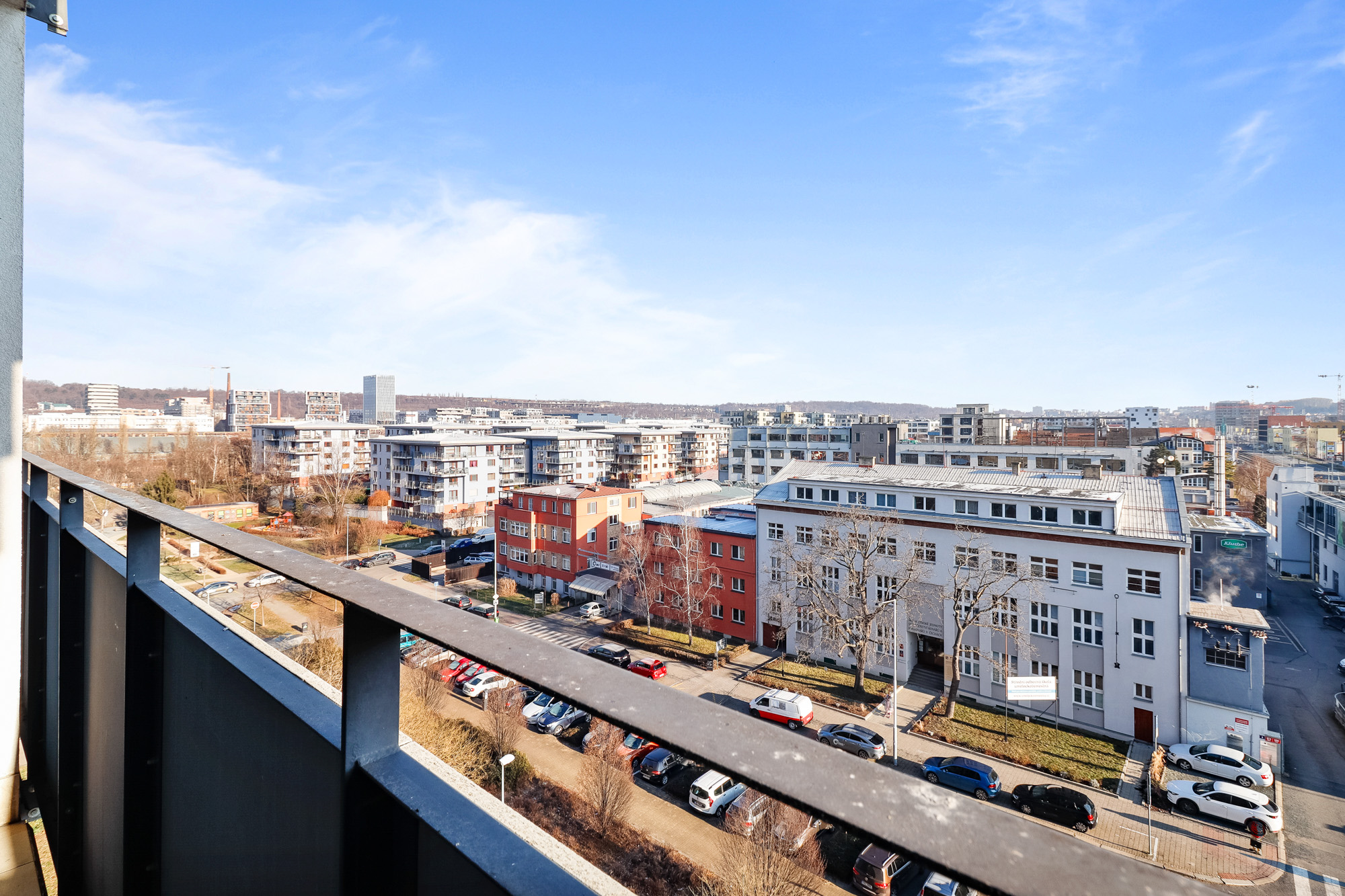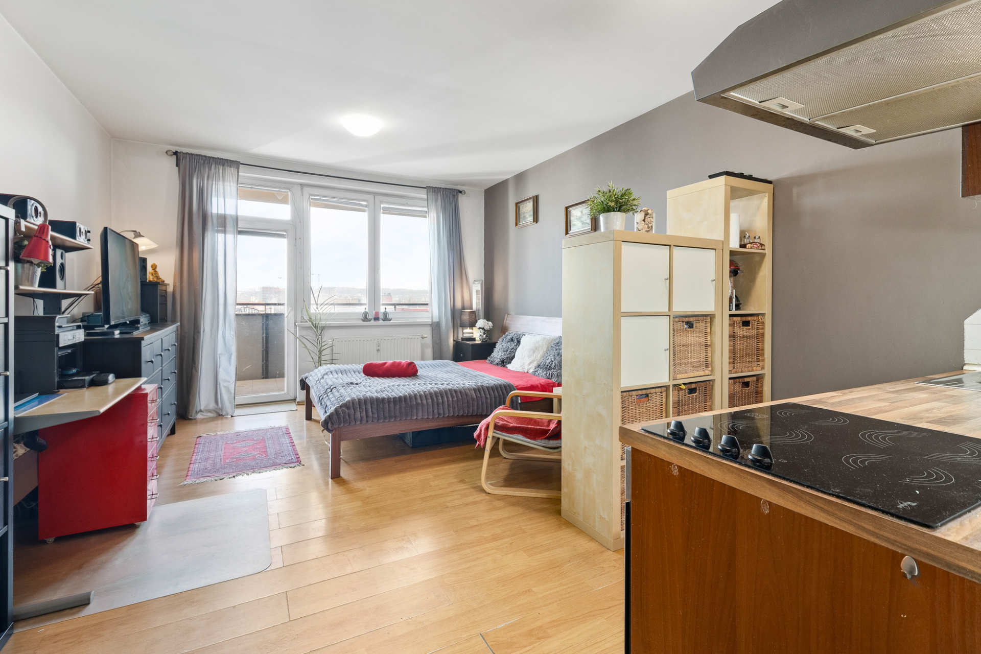 Byt 1kk v osobním vlastnictví o velikosti 30,9 m2 s balkonem 8m2 v ulici Podkovářská Praha 9 Vysočany. Byt je umístěn v 6. nadzemním podlaží s východní orientací. V domě výtah.