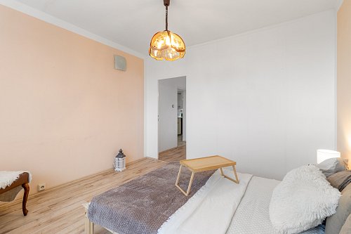 Hlavní ložnice (12,2 m²) s vlastní lodžií na stejnou stranu