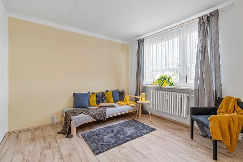 Byt je velmi světlý a vzdušný, díky oknům orientovaným na tři světové strany. Působí příjemně otevřeným dojmem a zároveň nabízí velký potenciál k úpravám dle vlastních představ.