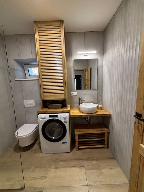 Díky dvěma koupelnám lze dům provozovat jako dva menší apartmány, což obvykle zvyšuje obsazenost i celkovou tržbu.