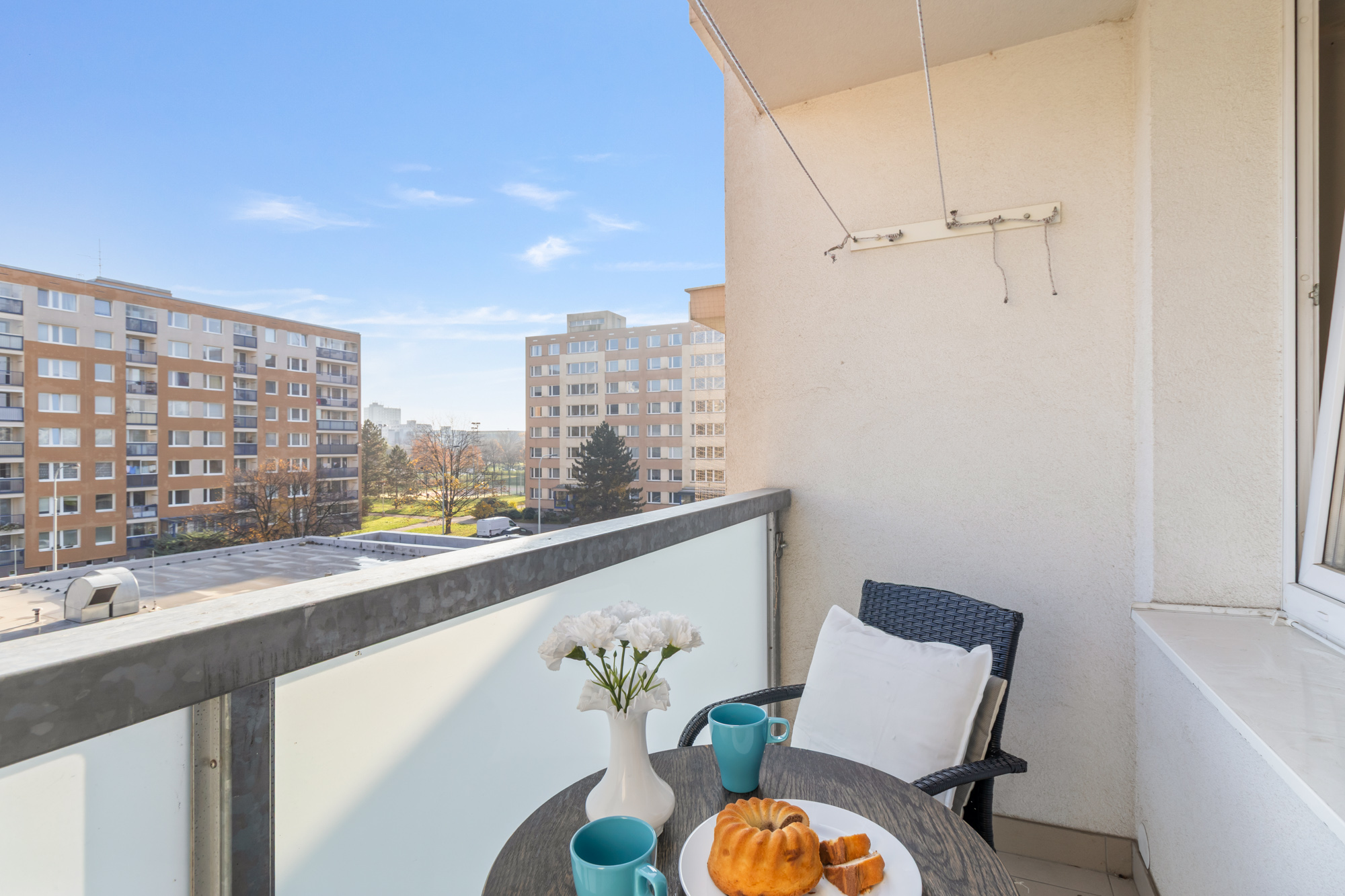 Z obývacího pokoje je vstup na útulnou lodžii o velikosti cca 3 m², kde si můžete vychutnat ranní kávu.