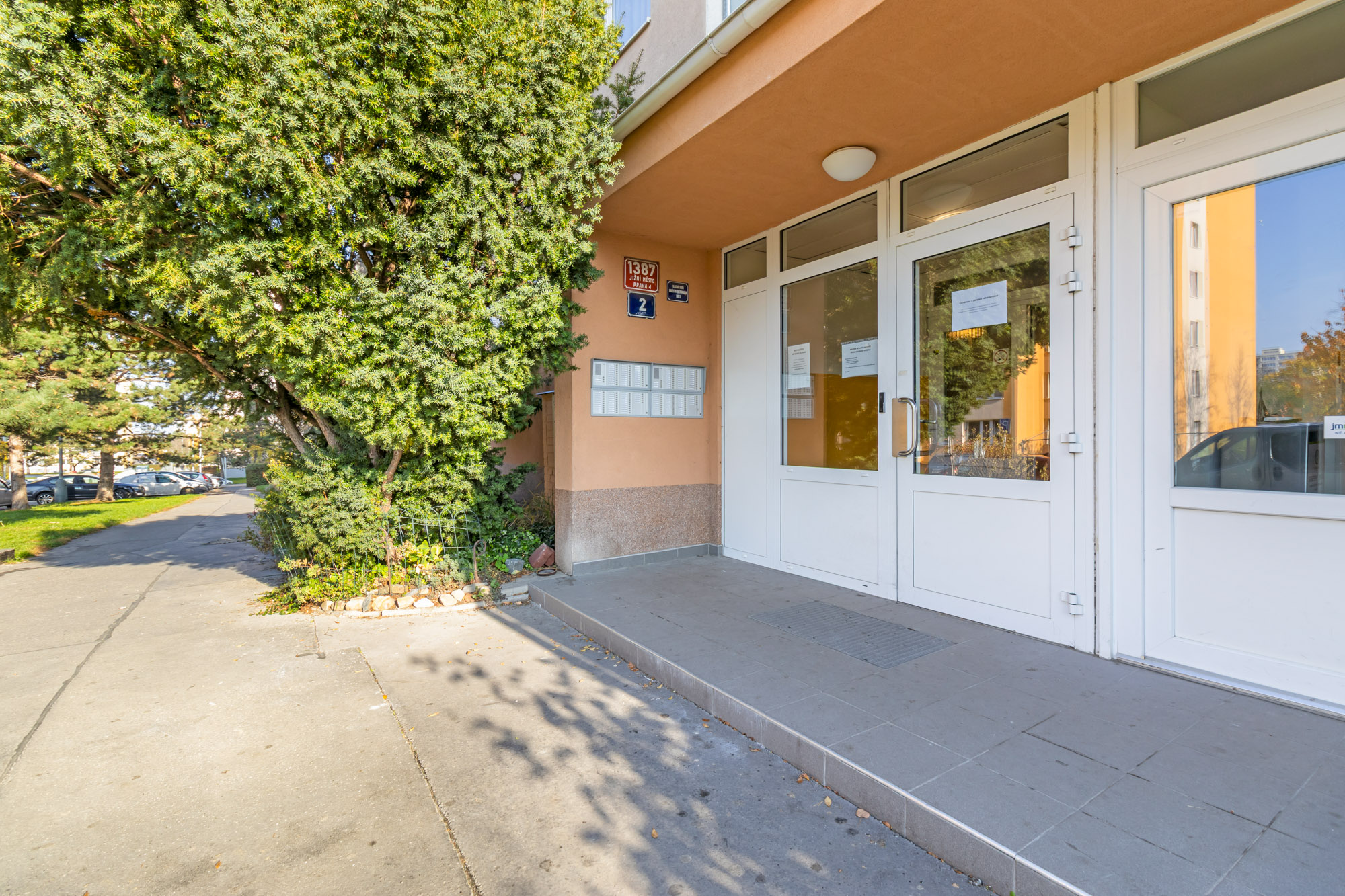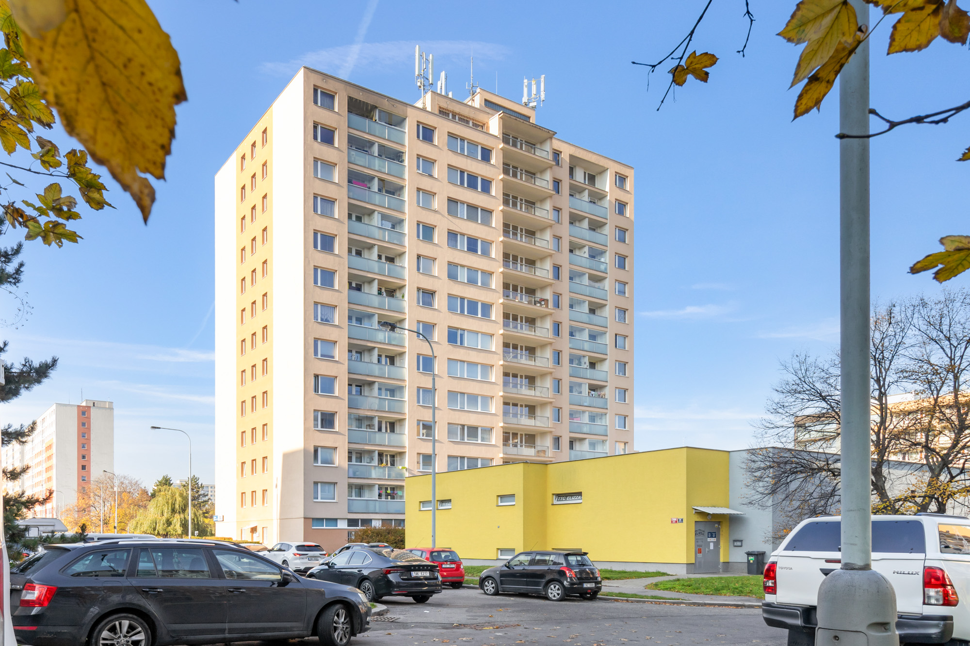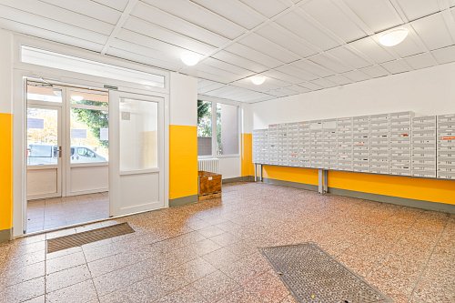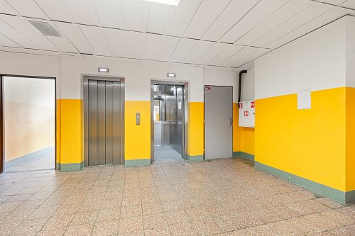 Dům je po kompletní revitalizaci – má novou fasádu, zateplení, vstupy i výtahy.