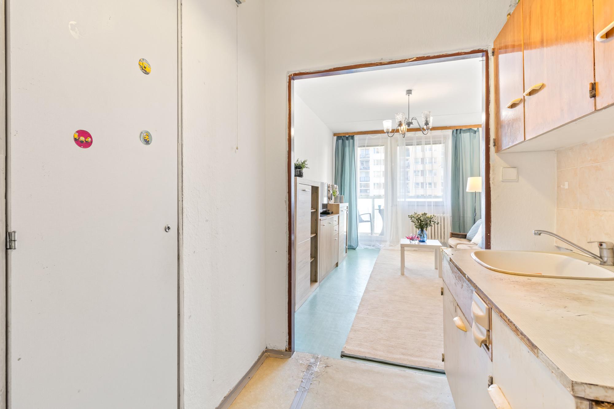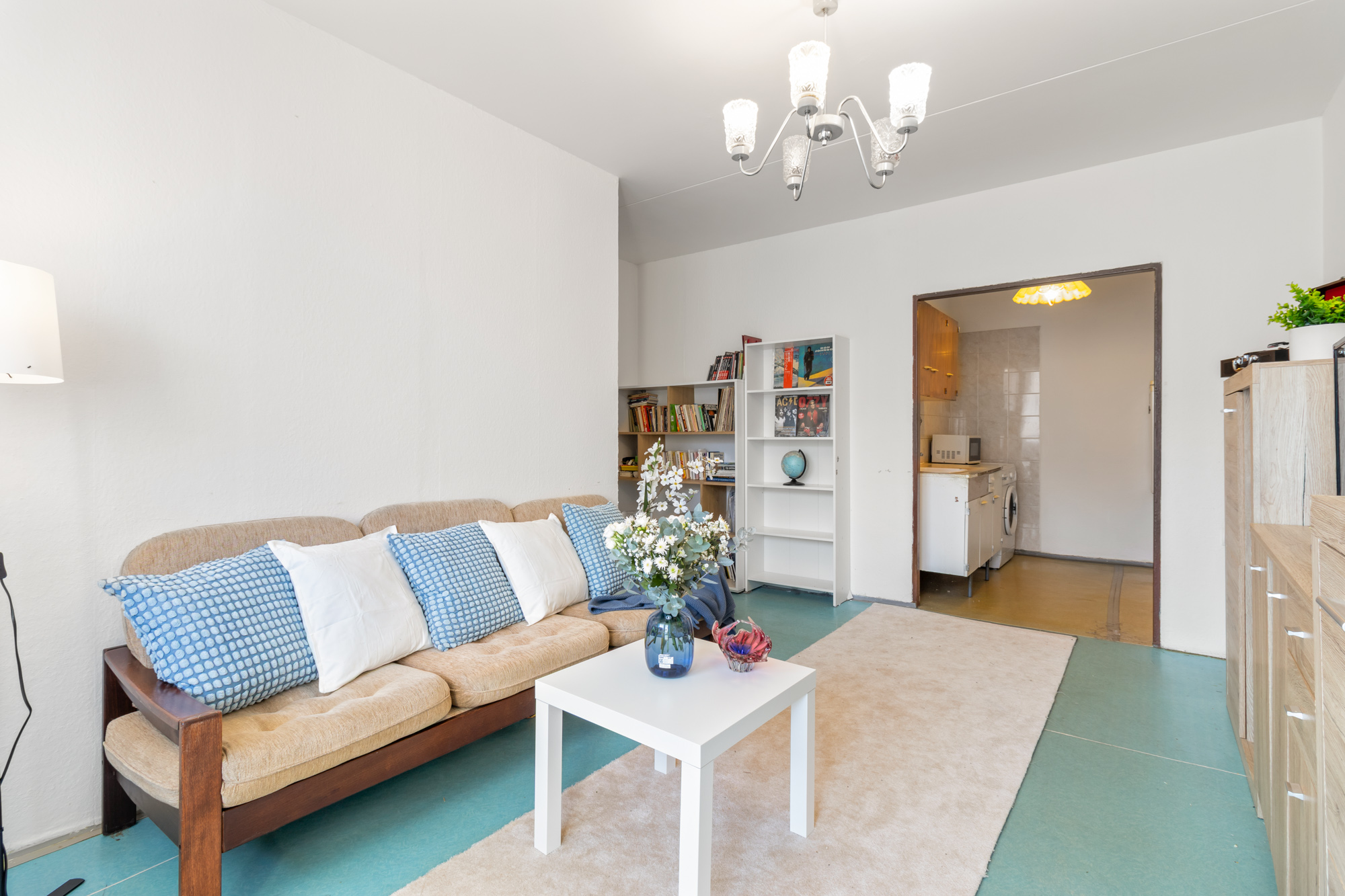 Na podlaze je původní lino, v koupelně sprchový kout a kuchyňský kout je vhodný k rekonstrukci a modernizaci.