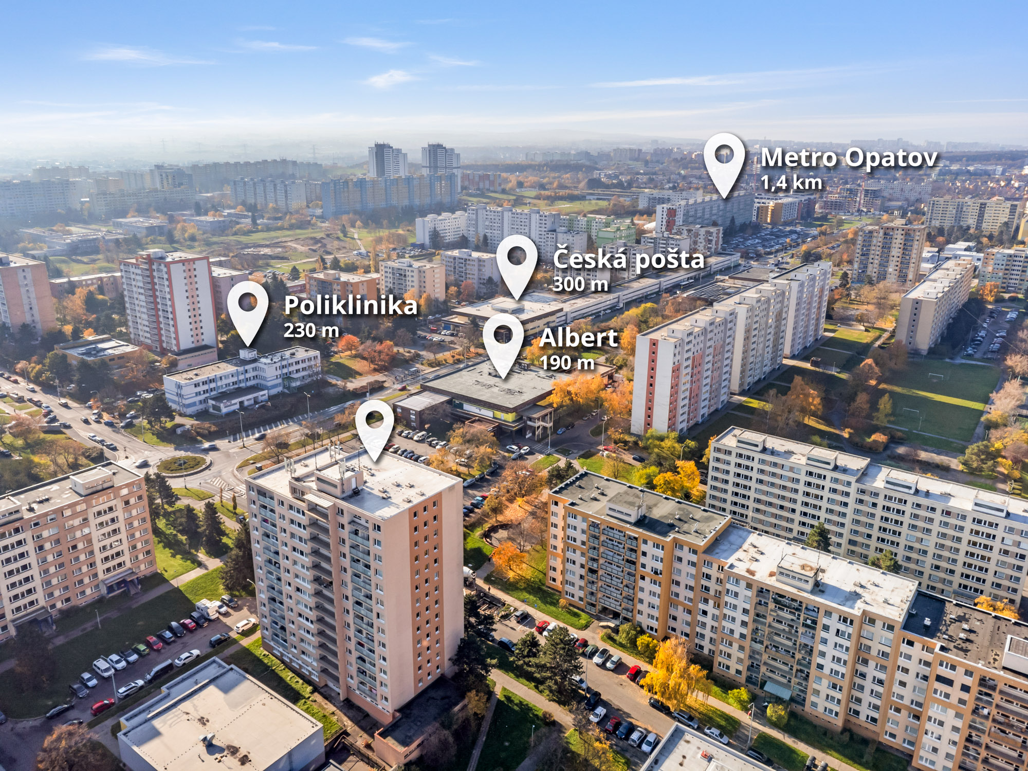 pár minut chůze od stanic metra Háje a Opatov,