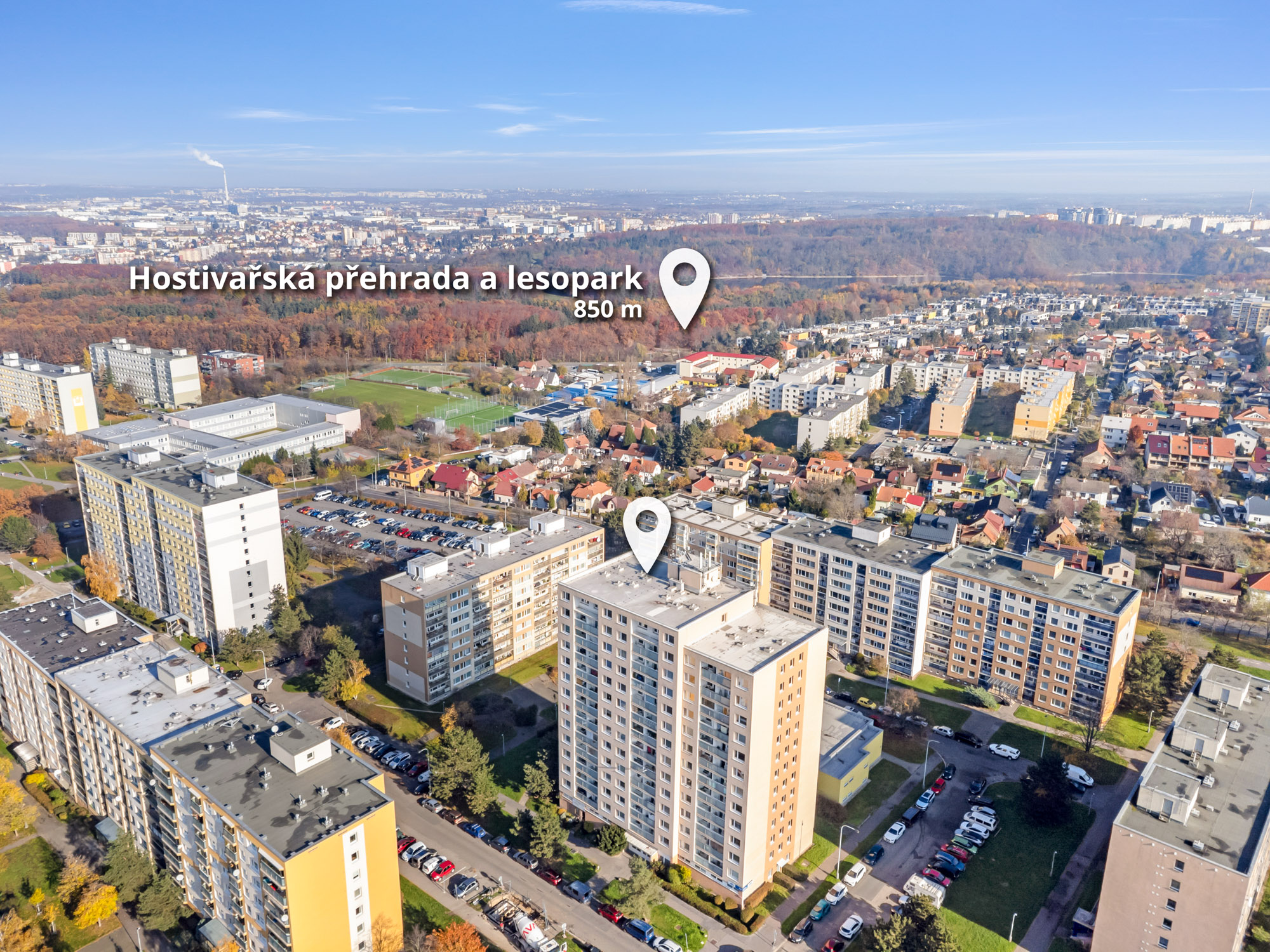 Miličovský les a Hostivařská přehrada** v docházkové vzdálenosti – ideální pro procházky, sport i odpočinek.