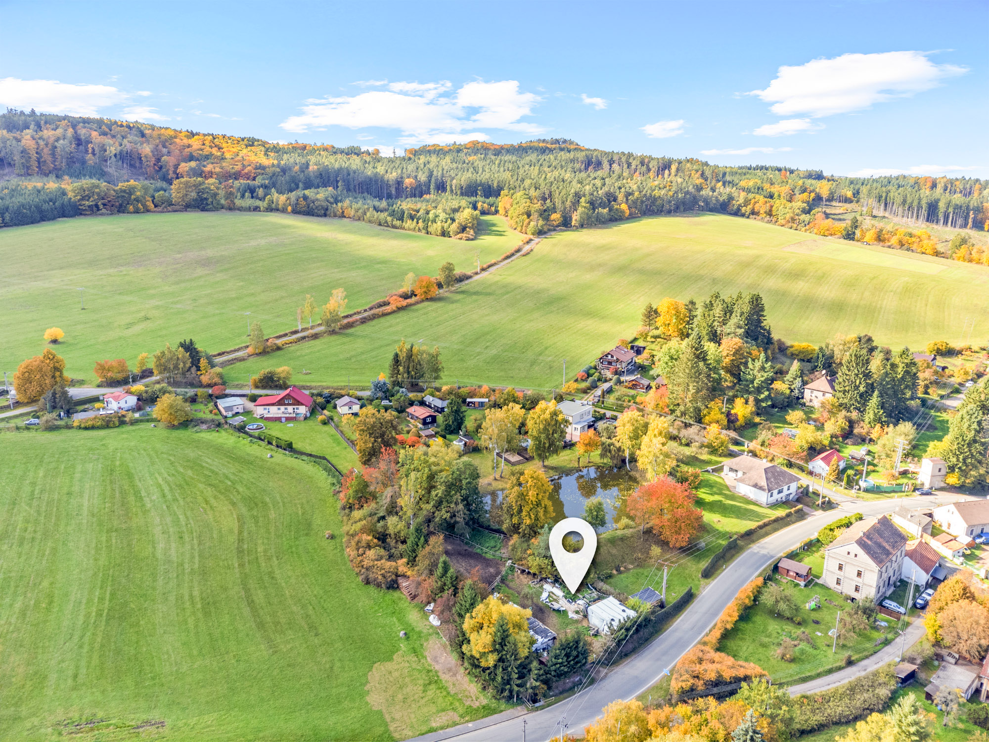Celá parcela s rybníkem má 5 714 m², takže je možné koupit poloviční podíl na celém pozemku včetně rybníka, nebo využít předpřipravený geometrický plán vlastníků a koupit konkrétní část stavební parcely o velikosti 1 429 m² + 1/2 podíl na rybníku. Případně bez podílu na něm.