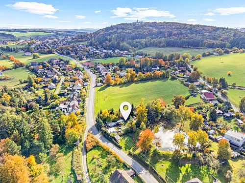 Pozemek má mírný svah a nabízí pohled do Chráněné krajinné oblasti Křivoklátska, ideální pro relaxaci, procházky a kontakt s přírodou.