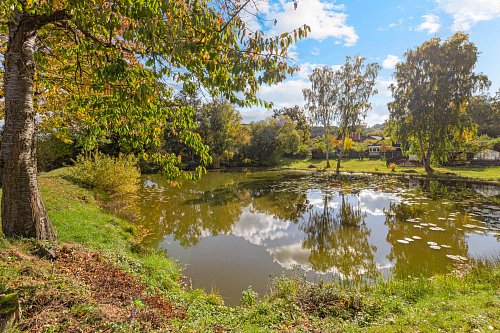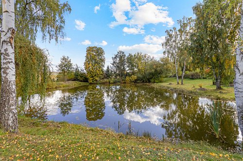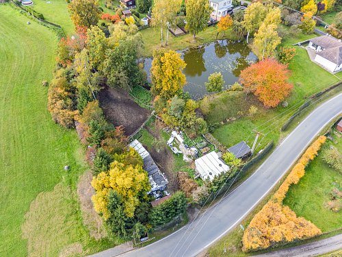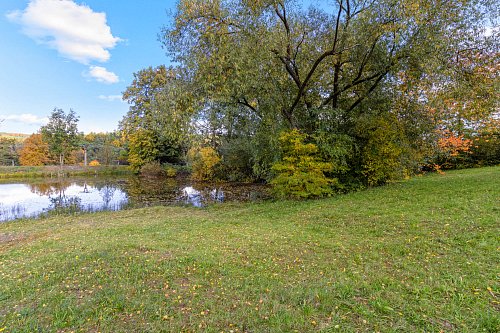 Krásný pozemek ve Zbirohu – stavební parcela s 1/2 podílem na rybníku.