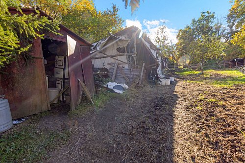 Majitel zde chová 2 koně na vyjížďky a kozy na mléko, je možné se domluvit na přenechání, pokud máte sen o malé farmě. Parcela bude při prodeji dle dohody vyklizena včetně krmení a materiálu.