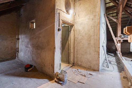 3. nadzemní podlaží (podkroví): příprava na byt 3+1 o výměře cca 80 m², nyní jsou dokončeny dva pokoje.